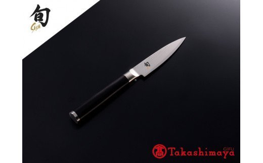 季節の移ろいをあじわい、より多彩に楽しむための包丁ブランド、「旬」。硬さの異なるステンレスを重ね合わせた33層構造により、刃体の表面に木目のように美しいダマスカス模様が広がります。