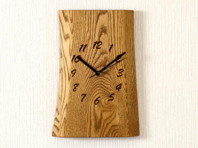 時計×1 【サイズ】巾14~21cm 高さ27cm 厚み3cm 【素材】天然木 栗材(国産材) |