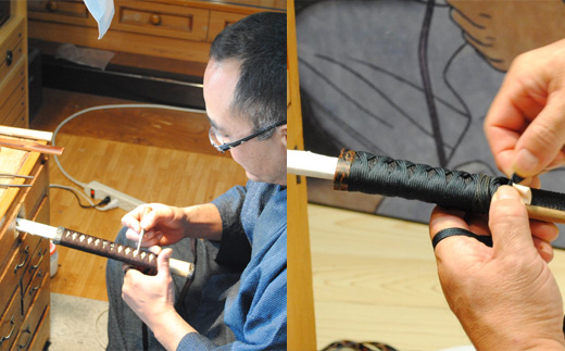 ・真剣の柄を巻いている職人が1本1本丁寧に作業いたします。