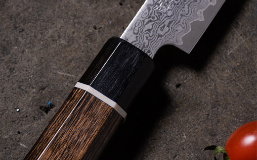 自社工場の職人の手で丁寧に仕上げる、世界に一つだけの波紋のブラックダマスカス包丁