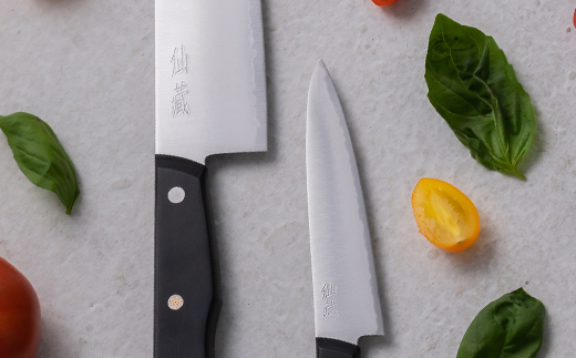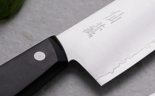 サンクラフトの自社工場で職人の手によって作られる包丁には「仙蔵」のロゴが入っています。