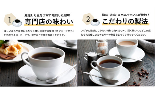 関市で最も古くから自家焙煎珈琲店を営むカフェ・アダチの人気2TOPのブレンドコーヒー詰め合わせです。