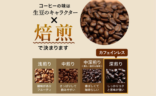 市で最も古くから自家焙煎珈琲店を営むお店の、厳選したコーヒー豆を使用したカフェインレスコーヒー。