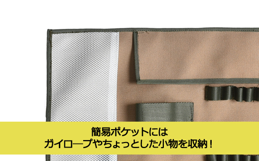 また簡易ポケットがあるのでガイロープやちょっとした小物の収納も可能です。