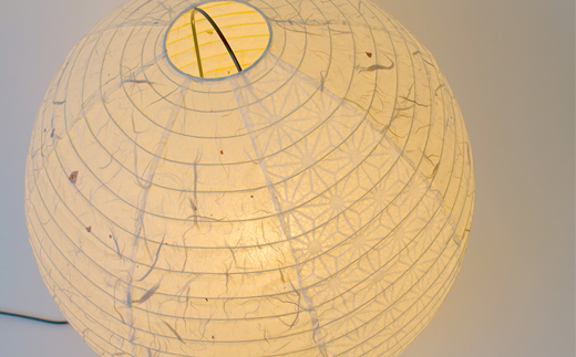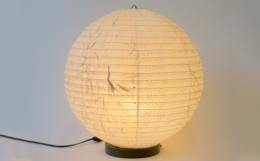 人気の高い雲龍紙とワンラインだけ美濃手すき和紙の麻葉柄和紙で貼った39cmの丸形提灯を置き型のフロアランプにしました。丸くて可愛い提灯は和室等にピッタリです。簡単に電球は交換可能です。