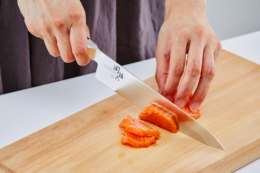 またハンドル部分の「本通し仕様」で、刃とハンドルの重さのバランスを良くし、持ちやすく安定して調理ができます。