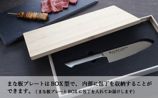 今回ご協力いただきました寄附者様へはまな板プレートの中に収納できる、佐竹産業で製造している濃州正宗作オールステンレス三徳包丁を中に収納してお届けします。