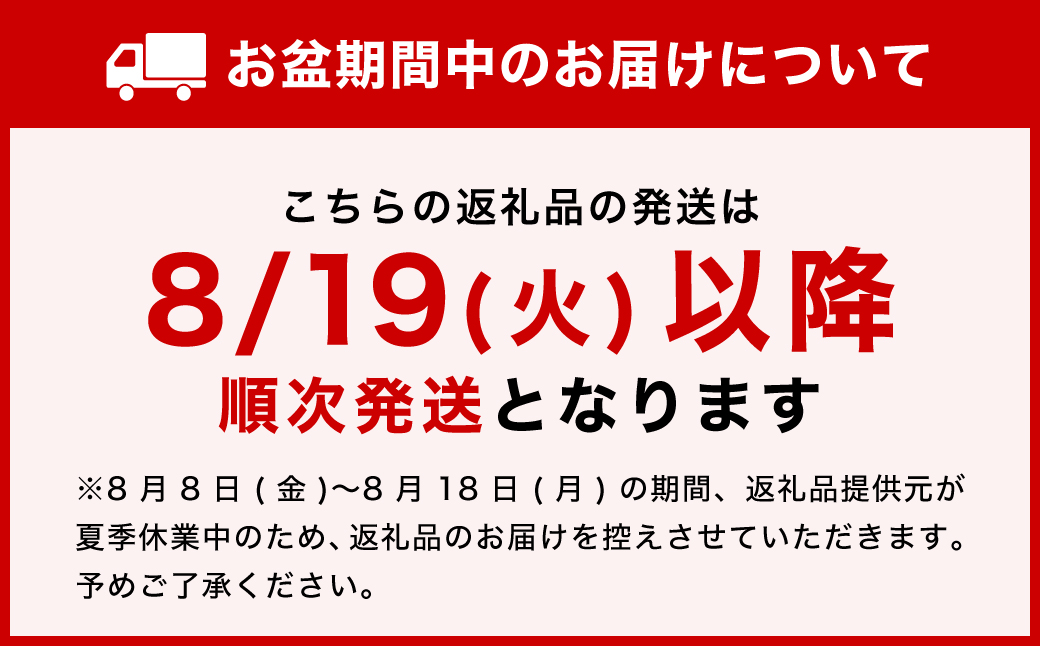 | 配送時期 | ご入金確認後、【7営業日】を目安に発送いたします。 |