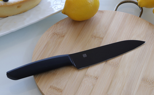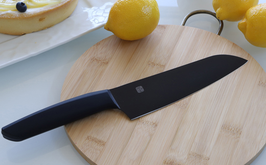 黒を基調としたソリッドなデザイン。ヒップアップハンドルの包丁は力がかかり易く、女性でも楽に押し切りが出来ます。