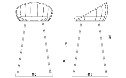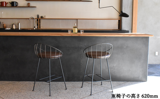 鉄ならではの細さをいかして、ユニークな形に挑戦したHoop(フープ)カウンターチェア。