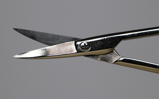 ●サビ防止のニッケルメッキ加工 ●一般的な三寸(約90mm)のマユ毛切鋏を製作しました。 ●曲刃なので、顔のラインに沿って、マユ毛を一本単位でとらえることができ、きめ細かいお手入れが可能 ●強くしなやかであり、手になじむ一体鍛造鋏(ブレード、ハンドルともに同一金属で構成されるオールメタル) ●完全 MADE IN SEKI!