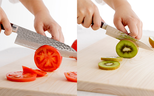 三徳包丁×1、ペティナイフ×1 ・三徳包丁 【サイズ】全長:305×46×16mm 刃渡り:180mm 【重さ】165g ・ペティナイフ 【サイズ】全長:238×26×14mm 刃渡り:135mm 【重さ】81g |