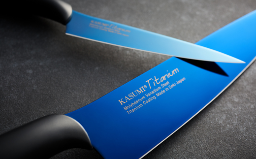 耐摩耗性・粘りに優れたモリブデンバナジウム鋼に、スミカマならではのチタンコーティングを施し、耐食性と彩りをプラス。関の熟練職人が一丁ずつ丹念に仕上げて、抜群の切れ味と機能性を実現しました。