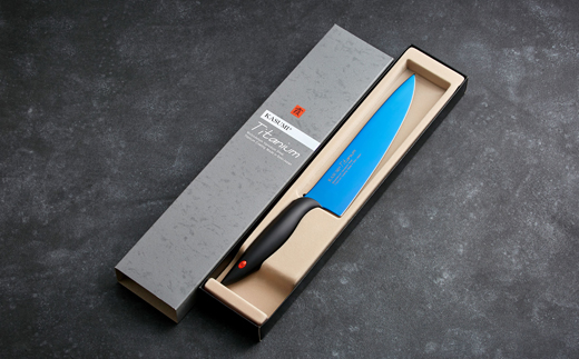 [22020/B 霞KASUMI チタニウム 剣型包丁 20cm ブルー]