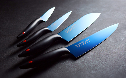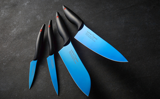 ブルー・グレー・ゴールドとカラフルな3色をラインナップし、優雅で画期的な包丁になりました。