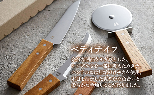テーブルでも使える「やさしいカタチ」。morinoki包丁4品セット