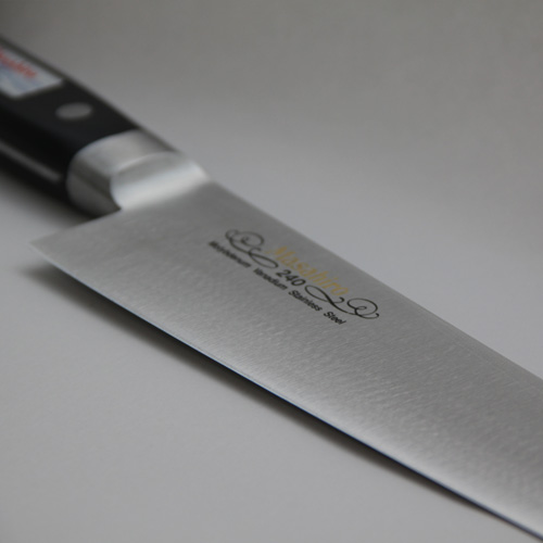 手に伝わる重量感はプロの感覚そのままに、実用性を重視した本職用牛刀
