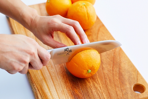 銘刀に由来する「折れず曲がらず、よく切れる」をテーマに、スタイリッシュな一体型デザインの関孫六匠創シリーズ・刃体とハンドルが継ぎ目のない一体構造なので、食器洗い洗浄器や熱湯での消毒が可能です。