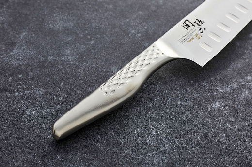 ・刃の形状は、肉・魚・野菜など様々な食材に万能に使用できる三徳タイプ
