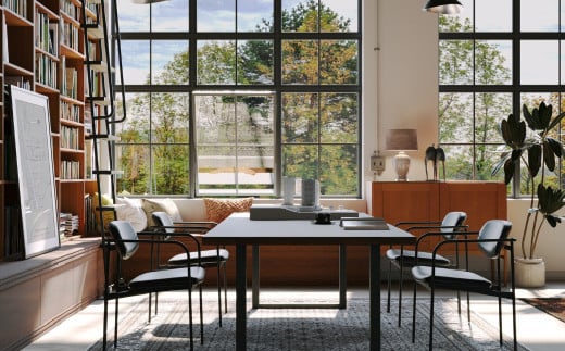 クランクさせたフレームワークとは少し間をあけて背、座を置くことでフレームが際立ち、鉄ならではの軽快感のあるデザインを実現させています。