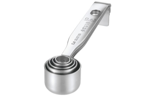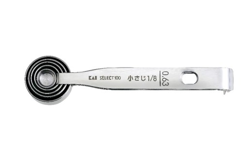 ■大さじ1・小さじ1・小さじ1/2・小さじ1/4(ひとつまみ)・小さじ1/8(少々)の5本組置いたままでも計量可能