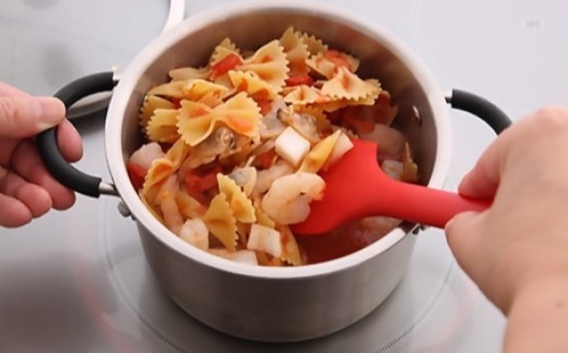 (4)ミニマは同シリーズのフライパン、片手鍋と重ねることができて、場所を取らないコンパクト収納。お料理ビギナーやお一人様にぴったりサイズ。