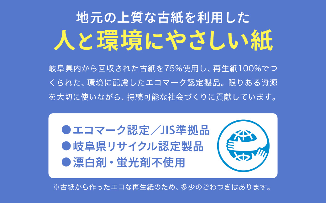 <エコマーク認定製品>やわらかい再生紙で出来ているので、お肌と環境にやさしい。