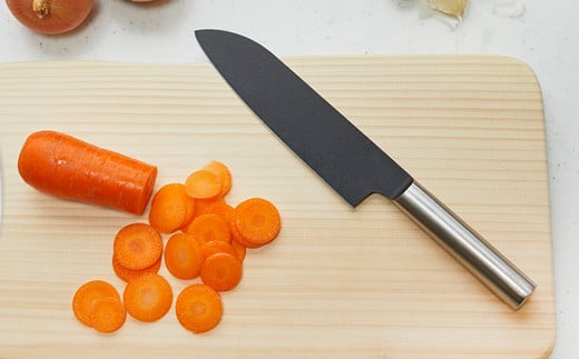 摩擦係数の極めて少ない特殊なフッ素樹脂コーティングを行うことにより、食材の切り離れが良くなり食材が刃につきにくく、食材カットのストレスを軽減し、バターやチーズ等の刃に密着しやすい食材も剥がれやすいです。