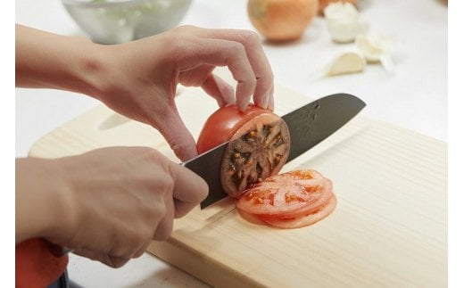 特殊コーティングにより切断荷重が少なくることで、刃が食材の中心に滑らかに入り込むので余計な力がかからず、半熟卵やトマト等の柔らかい食材もカタチを崩さず美しいくカットできます。
