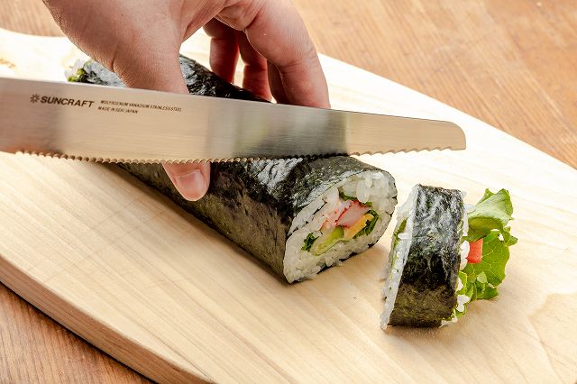 よく切れるパン切りナイフを使うことで、具だくさんのサンドイッチやフルーツサンドなど少し難しいレシピにもチャレンジ出来ます。ローストビーフや海苔巻きもきれいにカットできるのでぜひ、お試しください。
