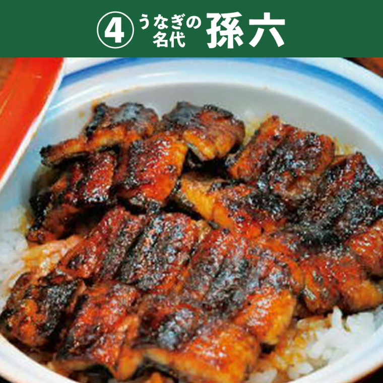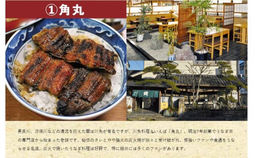 関市に代表するうなぎ専門店「うなぎの名代 辻屋」「しげ吉」「名代うなぎ 孫六」「角丸」の4店で利用できる5,000円分のお食事券です。