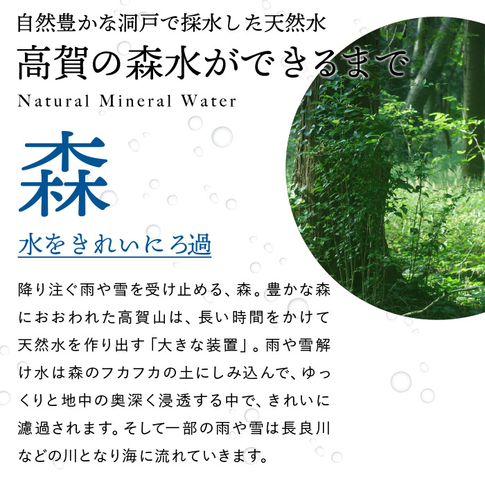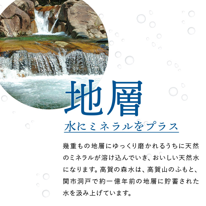 その清らかさの源となる高賀山から一億年の眠りを経て湧き出たナチュラルミネラルウォーターです。