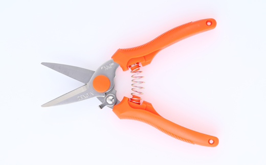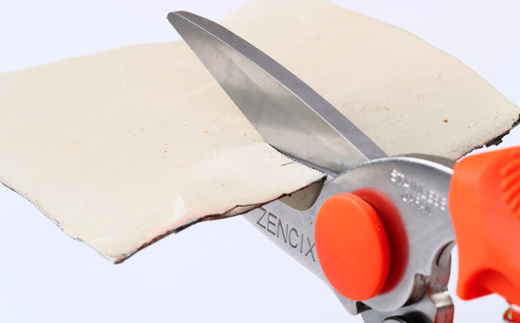 刃部にモリブデン鋼を用いて耐久力が強く、ハンドルにエバー樹脂を使用しているので手に優しく切りやすい万能ハサミ。